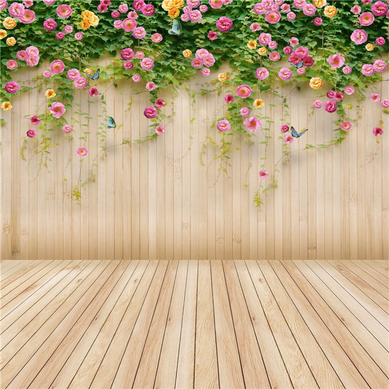 Backdrop Background Motif Dinding Lantai Kayu Bunga Bahan Vinyl