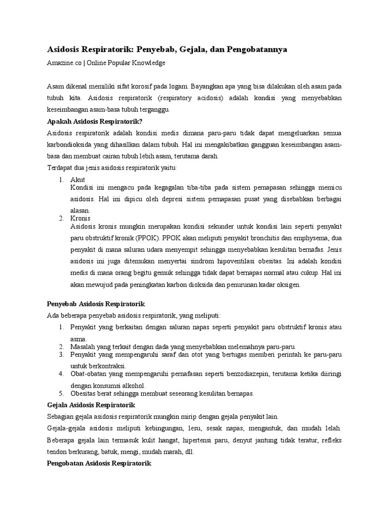 Asidosis Respiratorik Penyebab Ph Tubuh Asam Yang Mengancam Jiwa