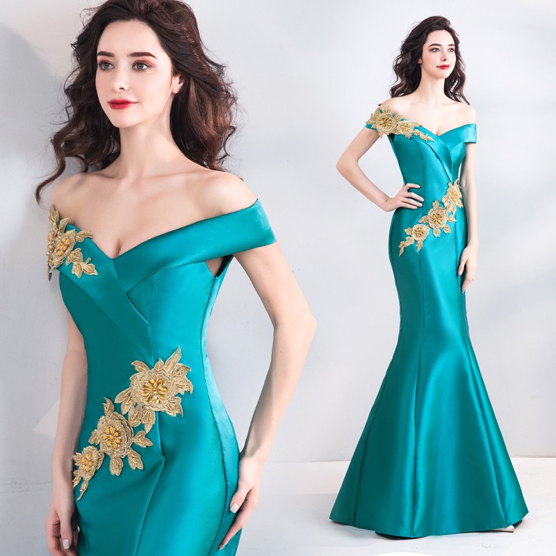 P C Dress Model Fishtail Warna Hijau Turquoise Untuk Wanita