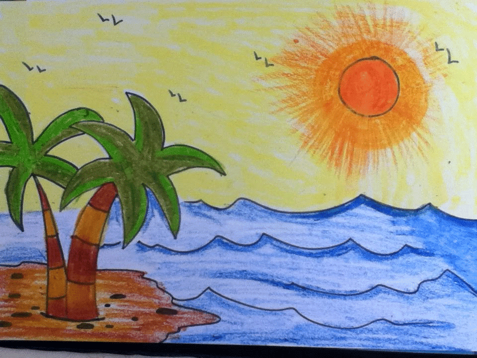 Menggambar Dan Mewarnai Pemandangan Pantai Dengan Gradasi Crayon