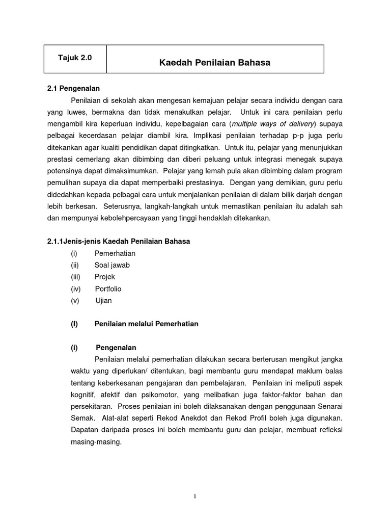 Bmm3033 Tajuk 2 Kaedah Penilaian Bm