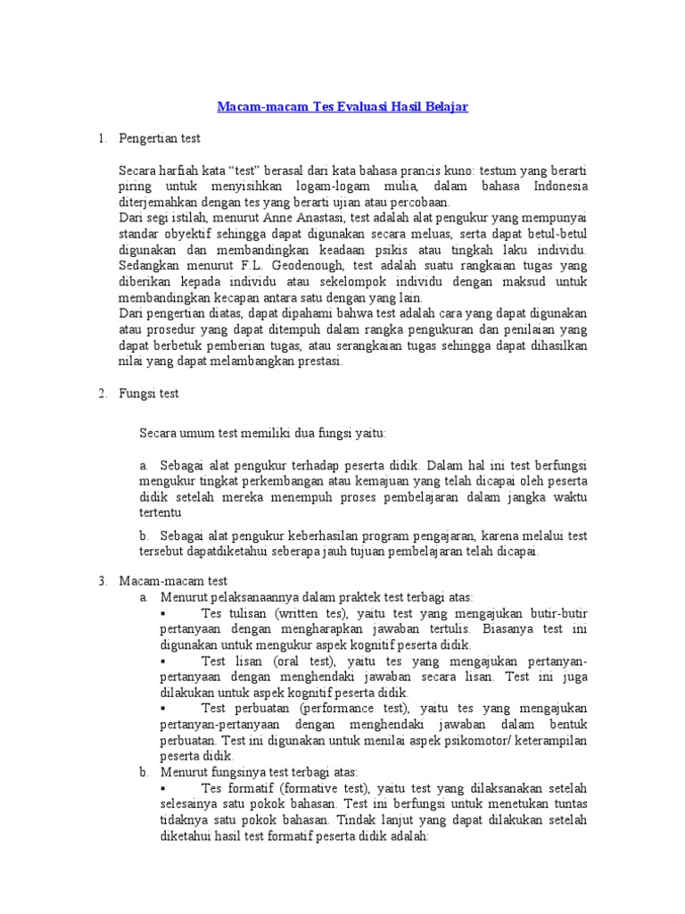 Jenis Jenis Tes Objektif Dalam Evaluasi Pembelajaran Dzikri