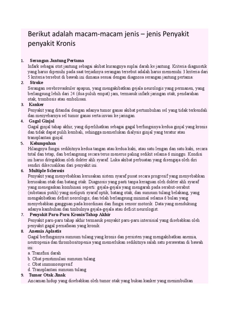 Berikut Adalah Macam Penyakit Kronis 2017 Doc