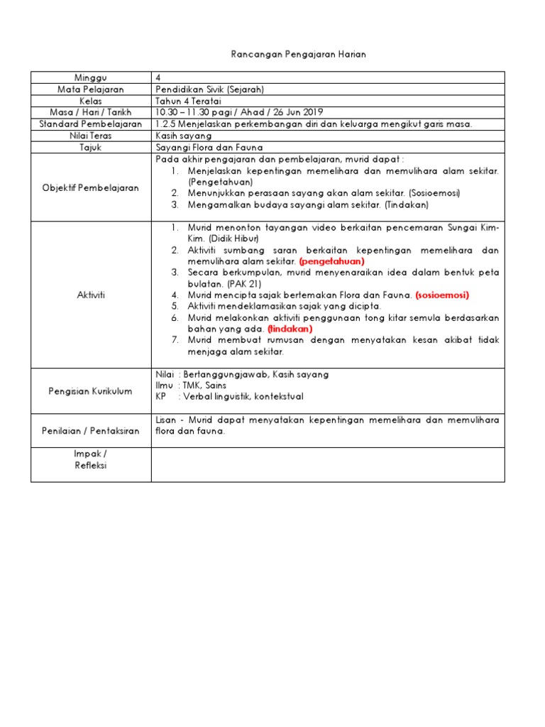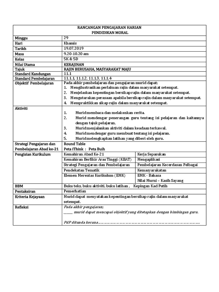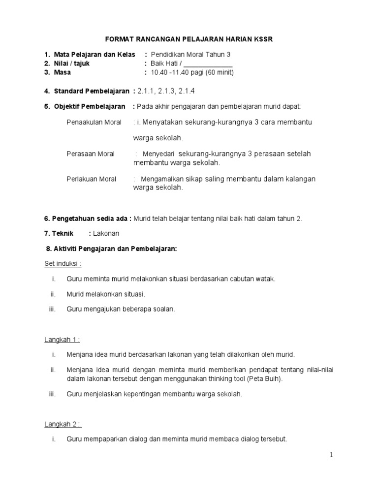 Doc Rancangan Pengajaran Harian Pendidikan Moral Siti Ana