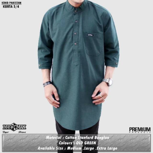 Baju Koko Kurta Lrngan 3 4 Hijau Trfk006 Shopee Indonesia