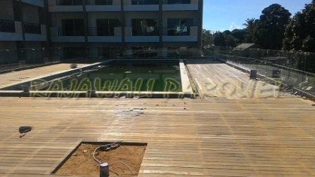 Pengerjaan Pool Deck Kayu Bengkirai Bali Rajawali Parquet