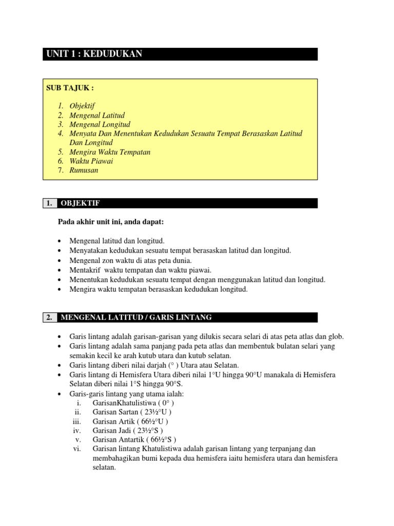 Nota Dan Latihan Form 1 2 3 Geografi Bab 1 Kedudukan
