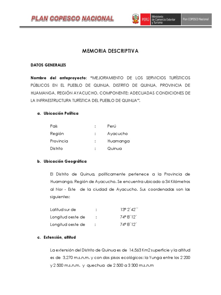 Memoria Descriptiva Datos Generales Nombre Del Anteproyecto