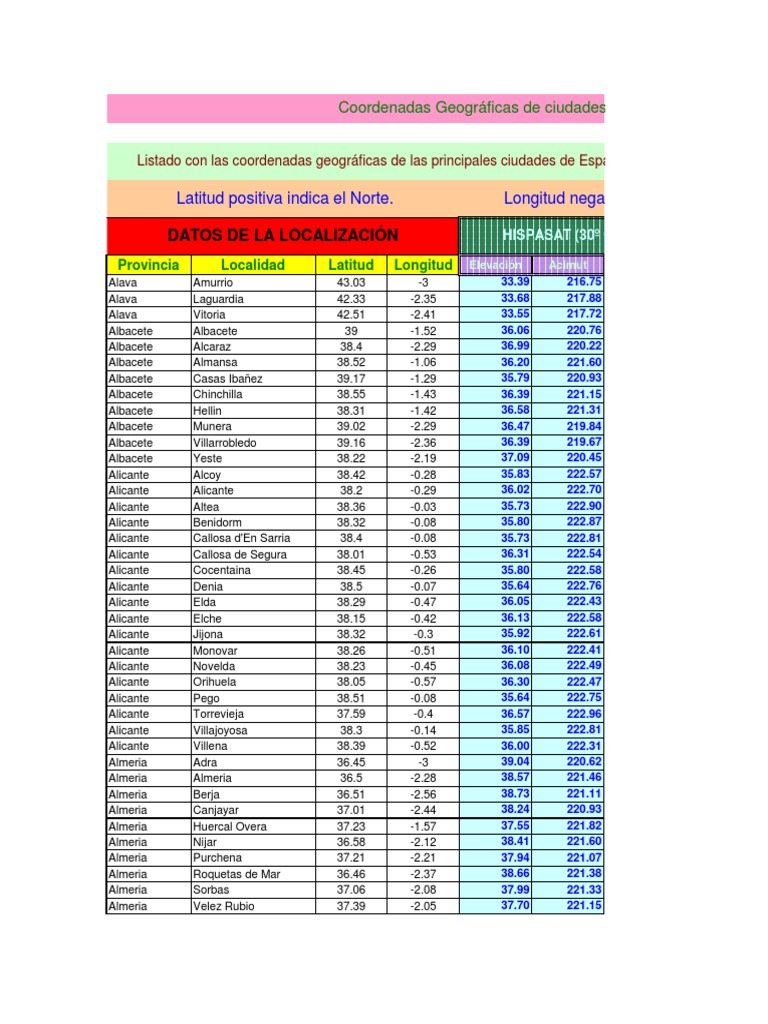 Coordenadas Geograficas De Ciudades De Espana Ciudad Provincia
