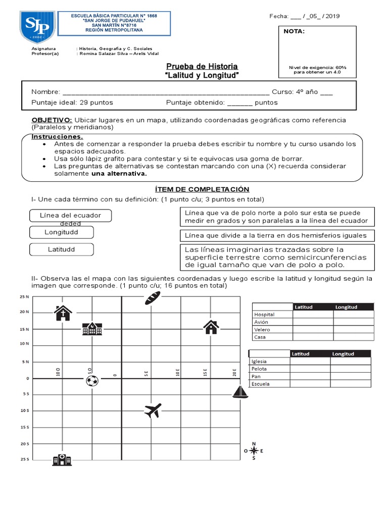 Evaluacion De Historia Y Geografia Coordenadas Geograficas