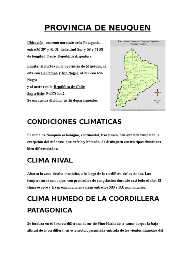 Topografia De La Provincia Del Neuquen Y Regiones Aledanas Donde