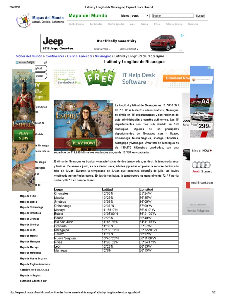 Latitud Y Longitud Nicaragua