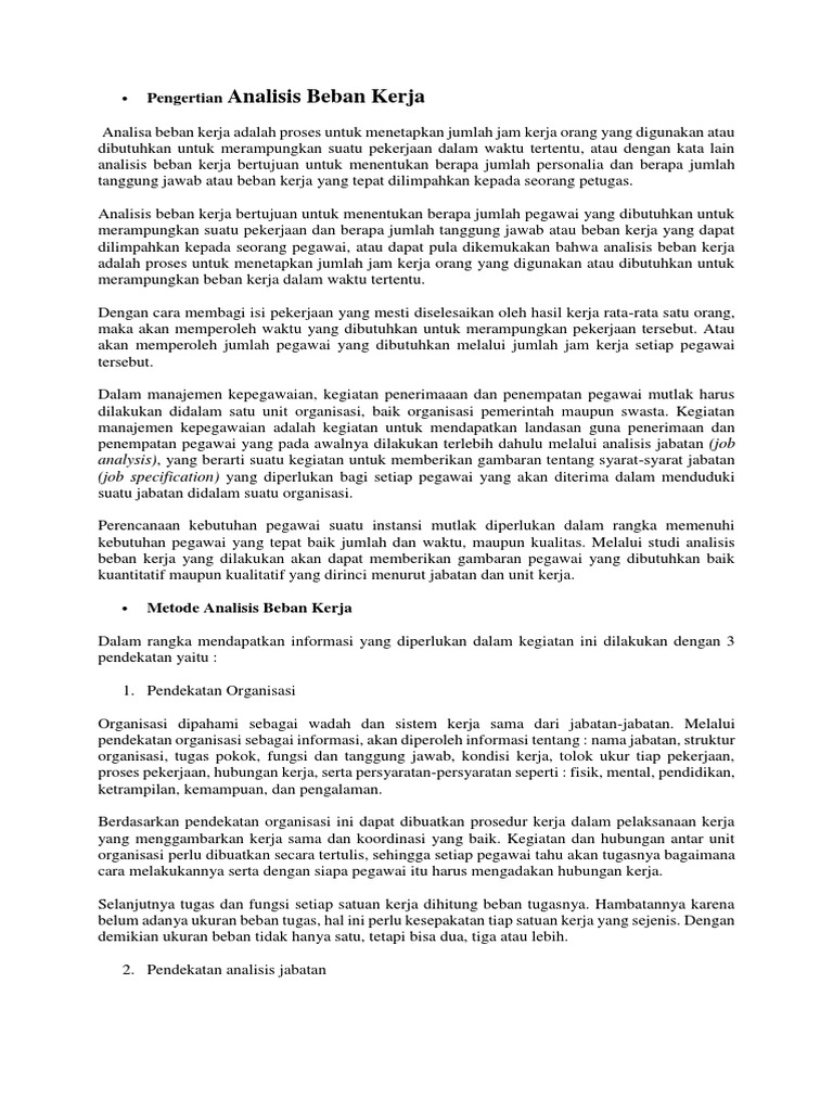 Doc Pengertian Analisis Beban Kerja Ummi Mars Academia Edu