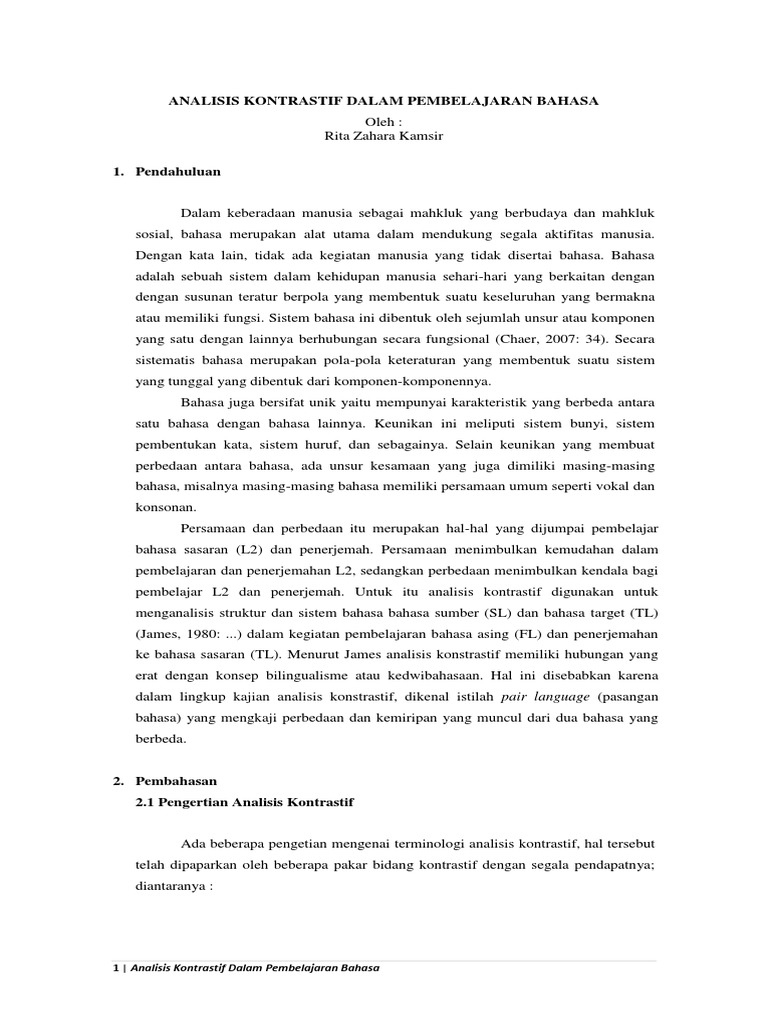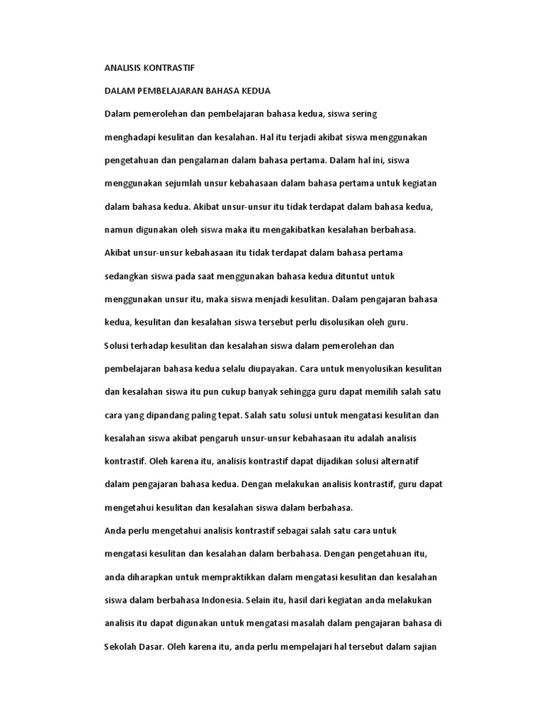 Pdf Analisis Kontrastif Dalam Pembelajaran Bahasa