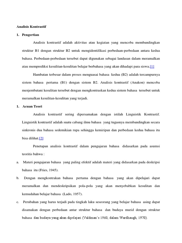 Pdf Analisis Kontrastif Dalam Studi Bahasa