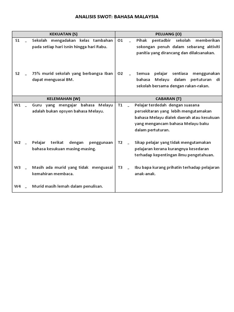 Doc Analisis Swot Bahasa Malaysia Sjk Eswary Es Academia Edu