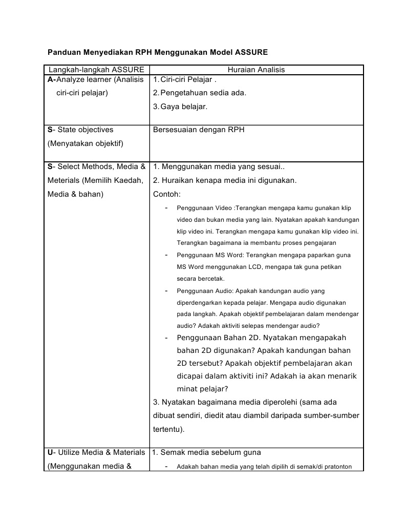 Aplikasi Model Assure Dalam Rph
