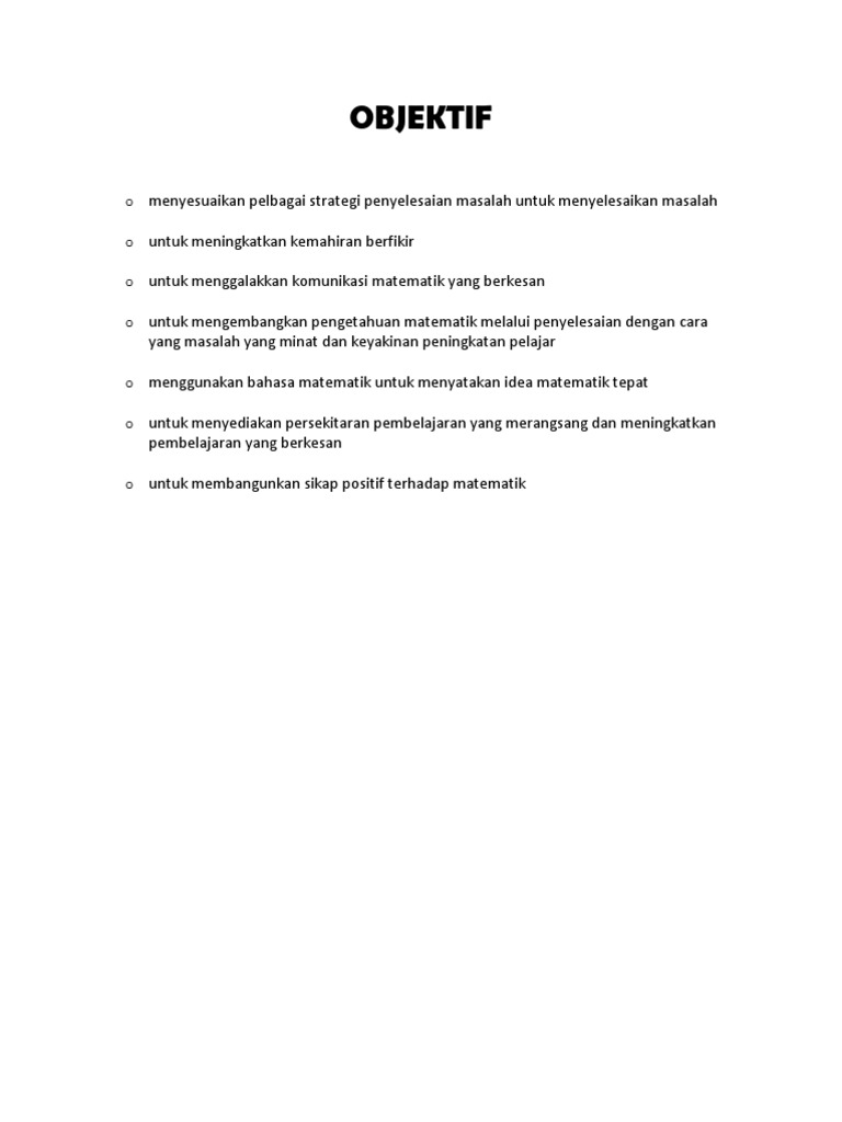 Objektif Pembelajaran Matematik
