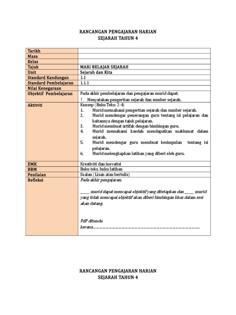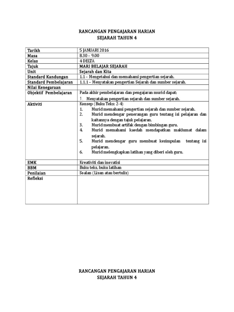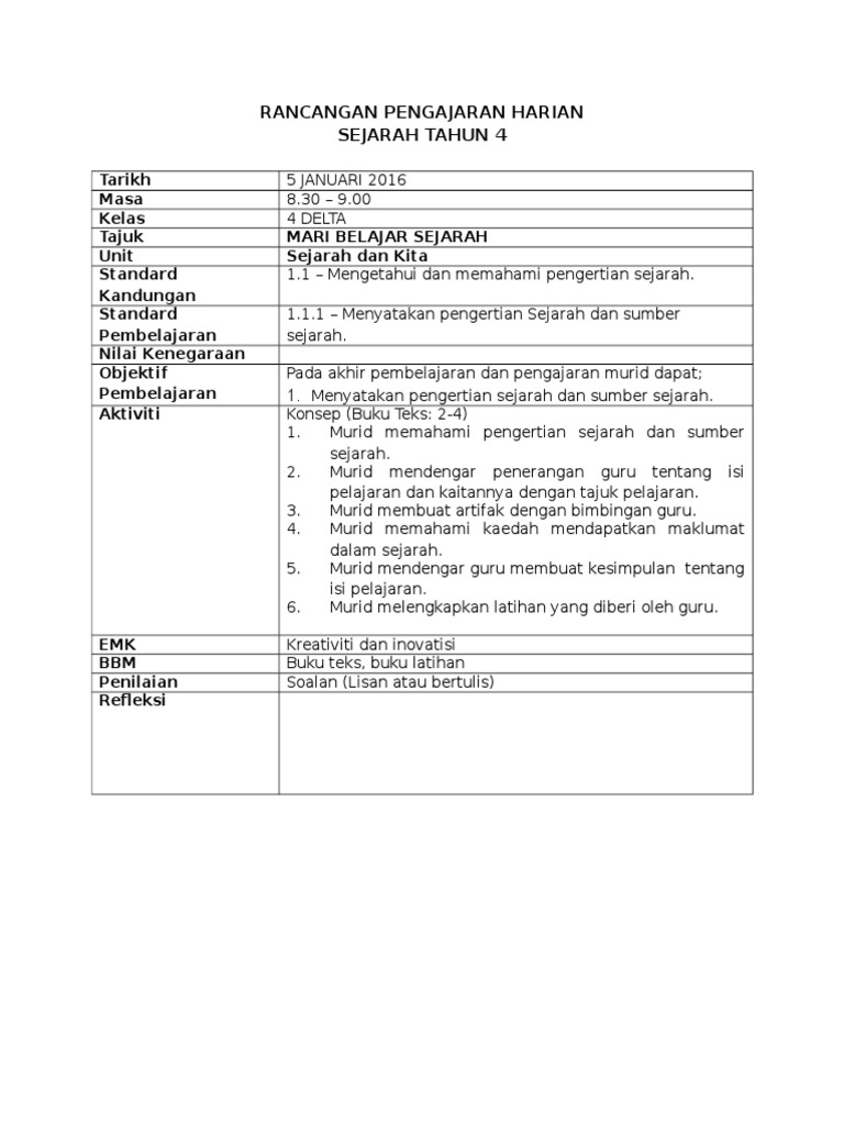 Informasi Pendidikan Rph Sejarah Tahun 4 Abad 21