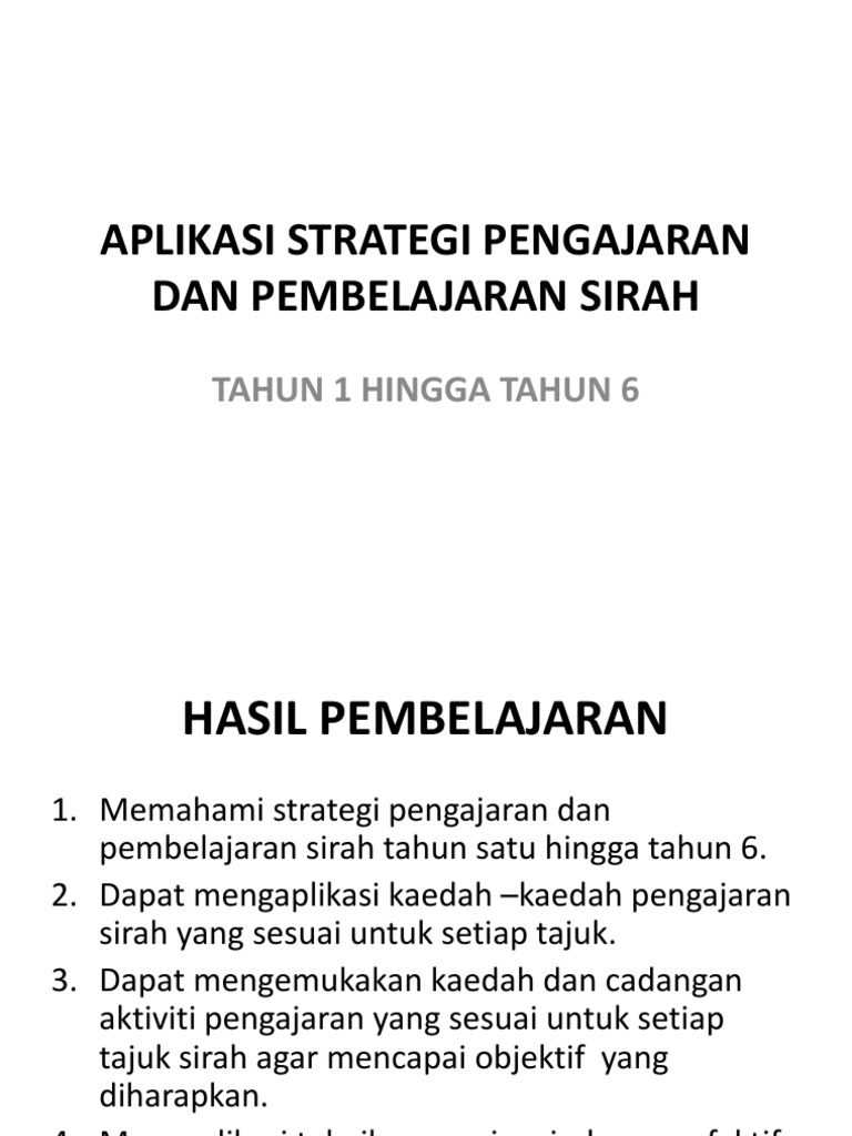 Aplikasi Strategi Pengajaran Dan Pembelajaran Sirah