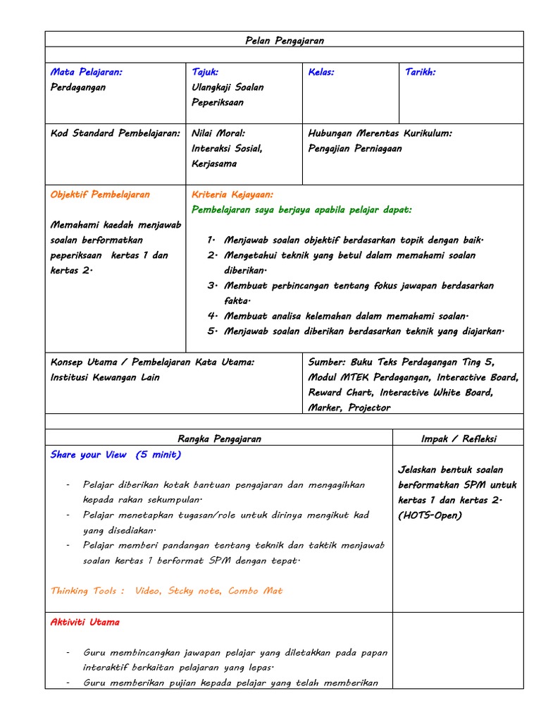 Objektif Pembelajaran Dan Kriteria Kejayaan Mudah Mengajar