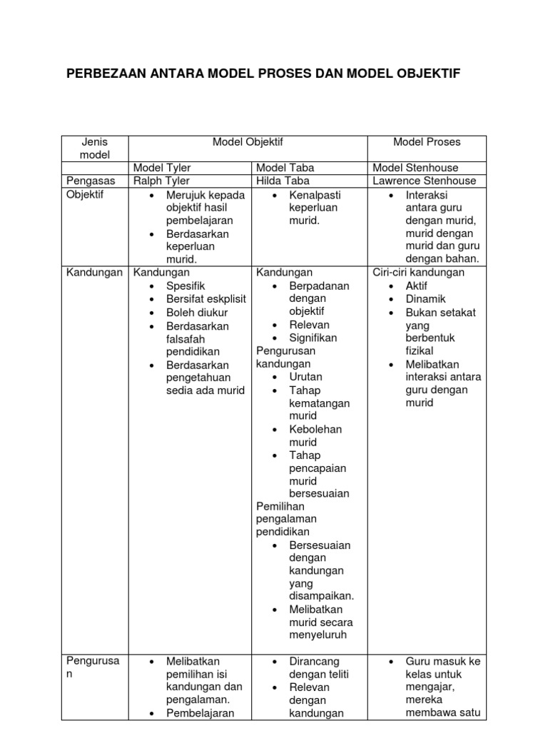 Perbezaan Antara Model Objektif Dengan Model Proses