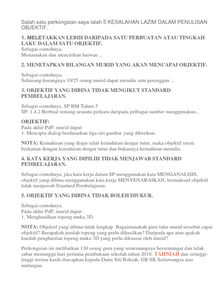 5 Kesalahan Lazim Dalam Penulisan Objektif Docx