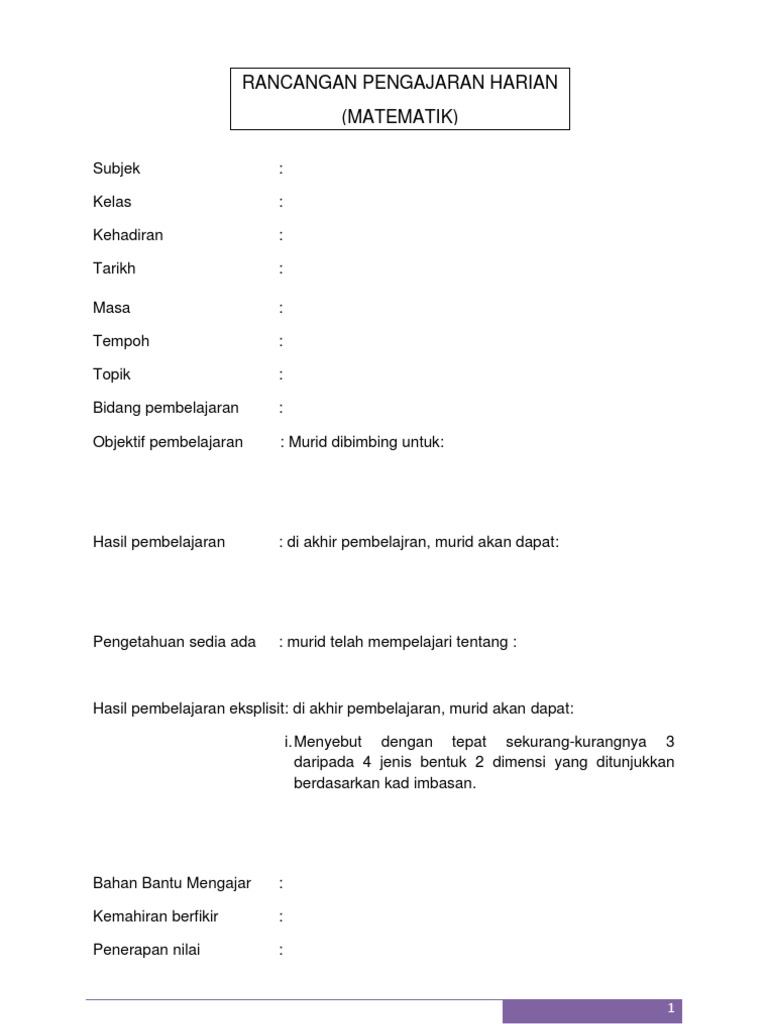 Draf Rancangan Pengajaran Harian Matematik