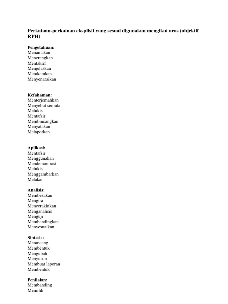 Objektif Pembelajaran Yang Eksplisit