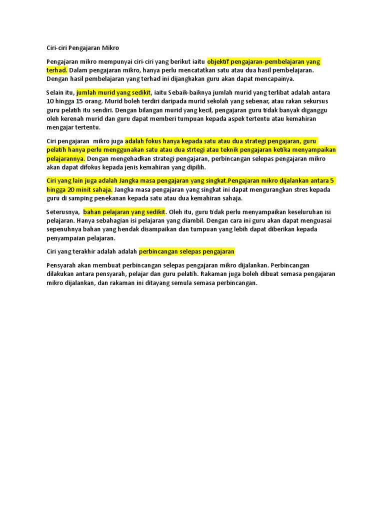 Ciri Utama Pengajaran Mikro