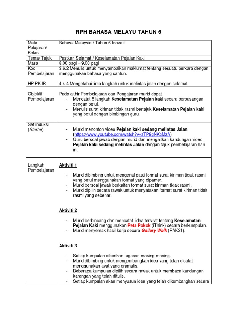 Rancangan Pengajaran Harian Pkjr Pendidikan Keselamatan Jalan Raya Docx Persediaan Mengajar Bahasa Melayu Tarikh 1