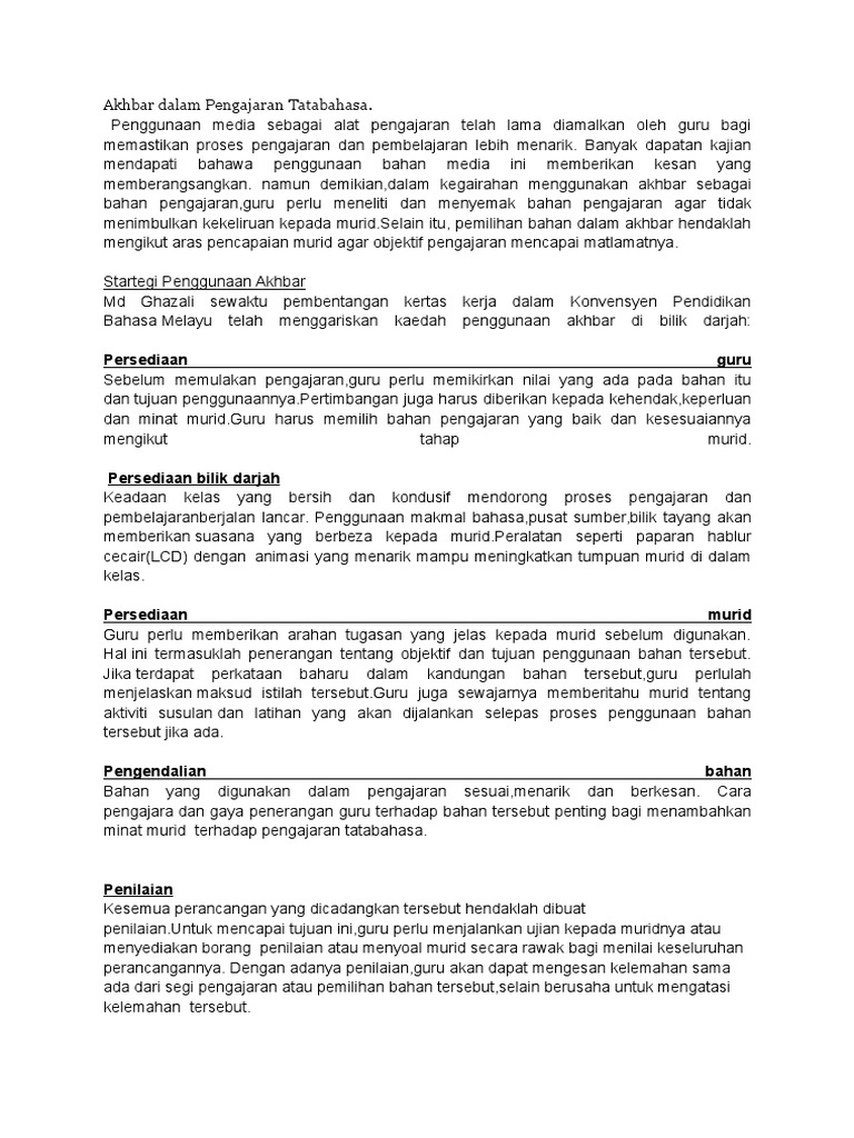 Akhbar Dalam Pengajaran Tatabahasa