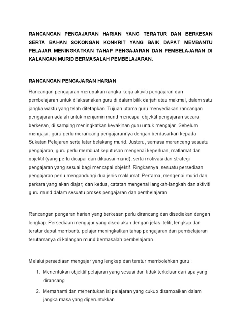 Panduan Penulisan Rancangan Pengajaran Harian Rph Contoh