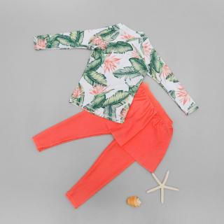 Baju Renang Lengan Panjang Motif Bunga Dan Garis Untuk Anak