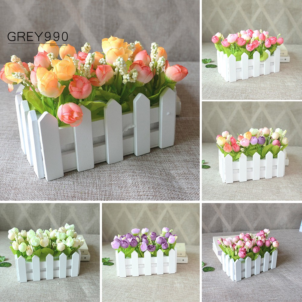 Bunga Buatan Vas Bunga Wadah Pot Kayu Kayu Pagar Berkebun
