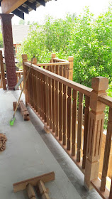 Pemasangan Pagar Kayu Kulim Seraya Kayu Larik Papan Ukir