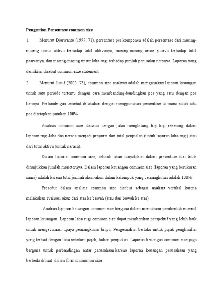 Tujuan Analisis Common Size Adalah Untuk Mempe Roleh Gambaran