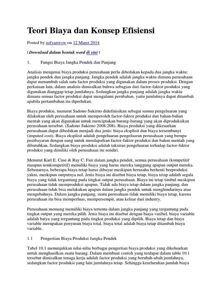 Pengertian Efisiensi Dalam Teori Ekonomi
