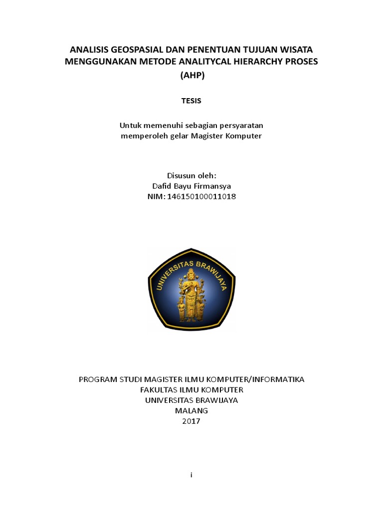Analisis Geospasial Dan Penentuan Tujuan Wisata Menggunakan Metode