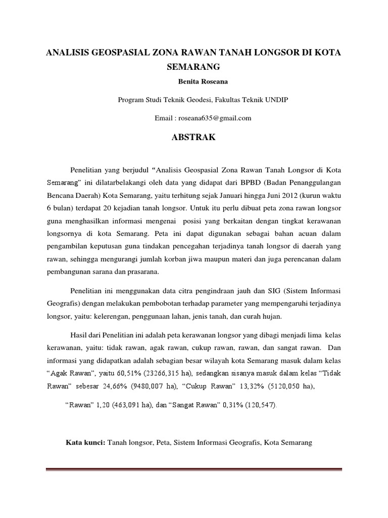 Analisis Geospasial Zona Rawan Tanah Longsor Di Kota Semarang