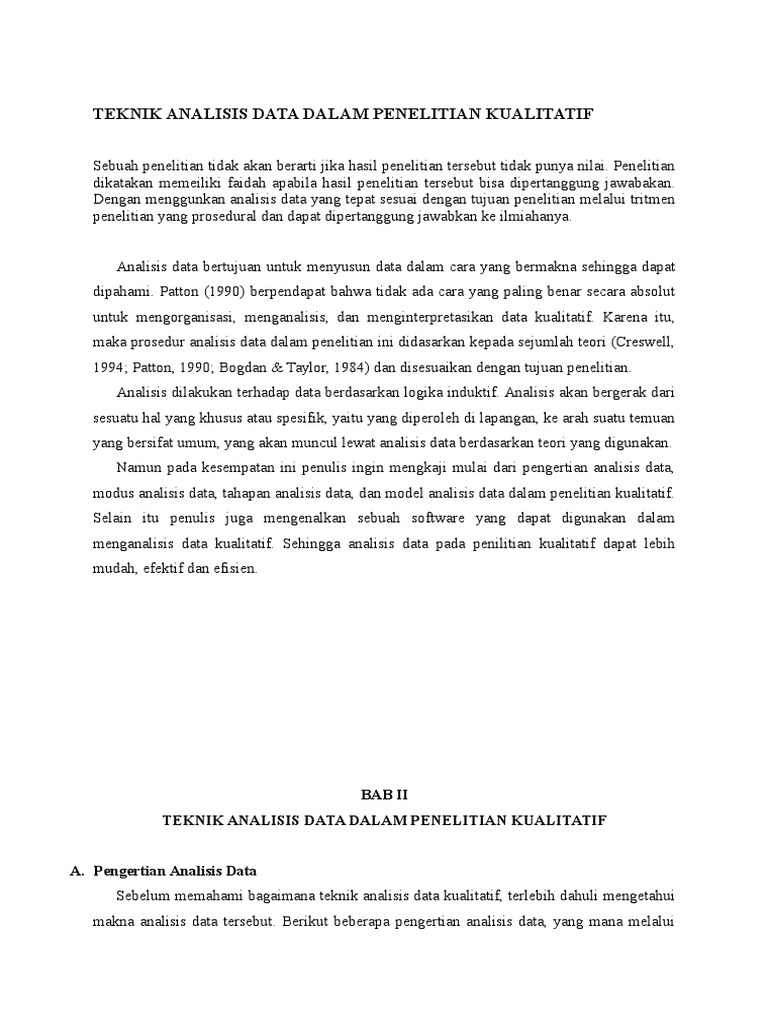 Pdf Analisis Data Dalam Penelitian Kualitatif