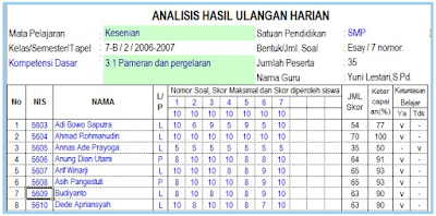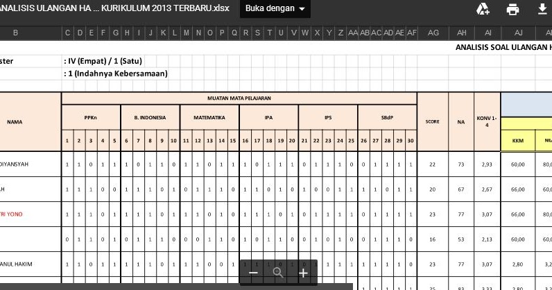 Analisis Hasil Ulangan Harian Kurikulum 2013 Sd Format Excel