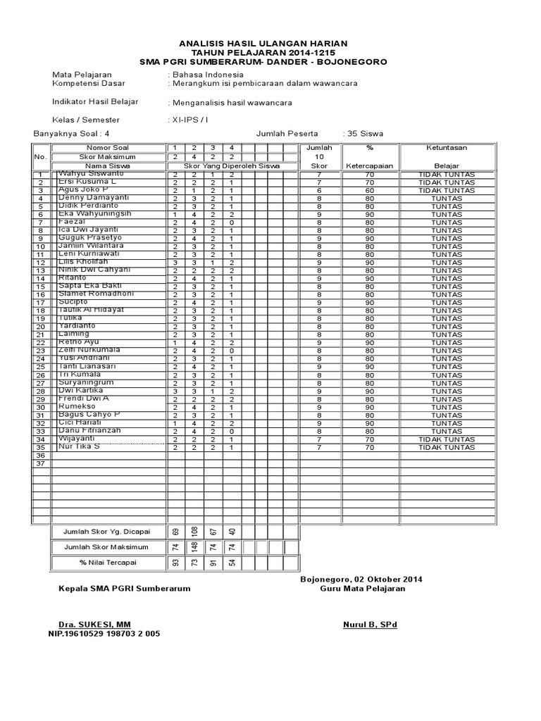 Narni Kurniawan Analisis Hasil Ulangan Harian