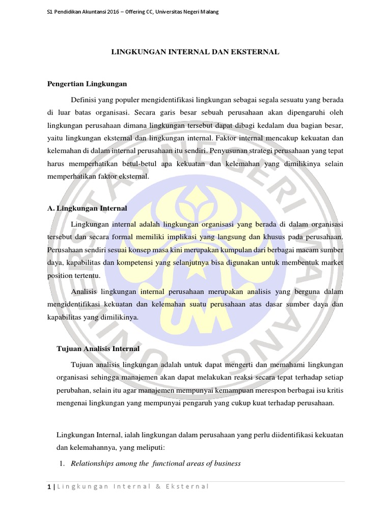 Analisis Lingkungan Internal Dan Eksternal Dalam Manajemen