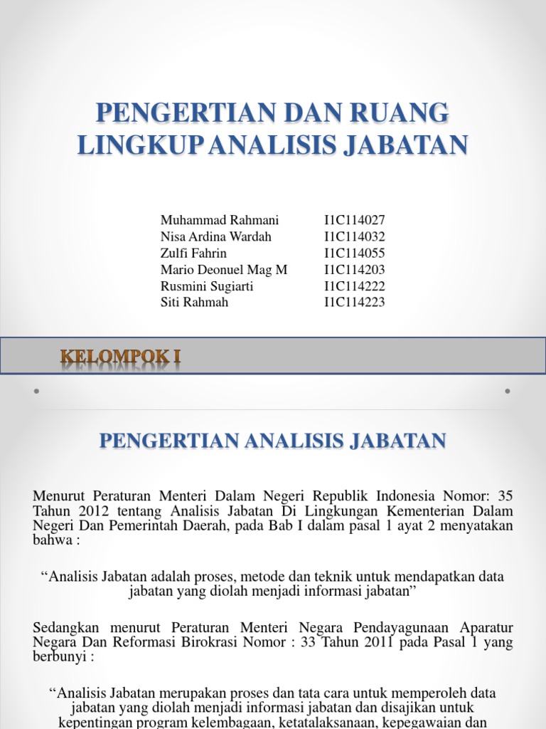 153758 Kel 1 Pengertian Dan Ruang Lingkup Analisis Jabatan
