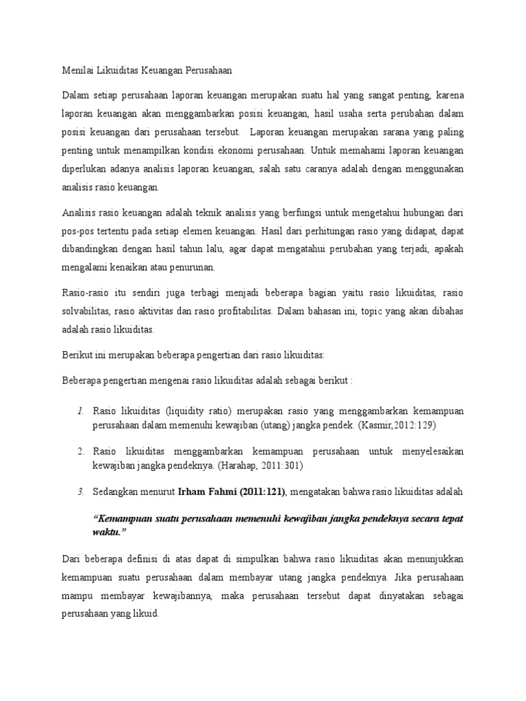 Artikel 1 Menilai Likuiditas Keuangan Perusahaan