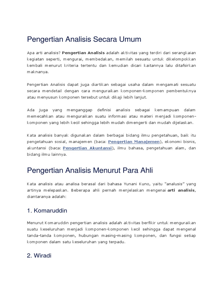 Doc Definisi Dan Pengertian Analisis Menurut Para Ahli Fatih Io