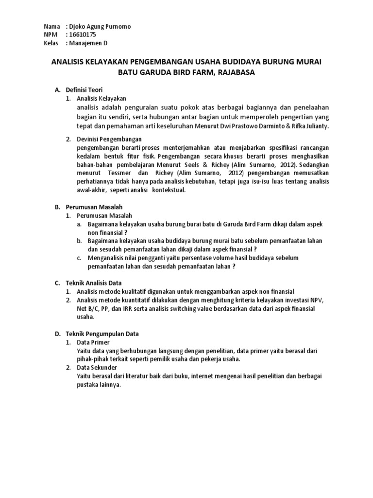 Analisis Kelayakan Pengembangan Usaha Budidaya Burung Murai Batu