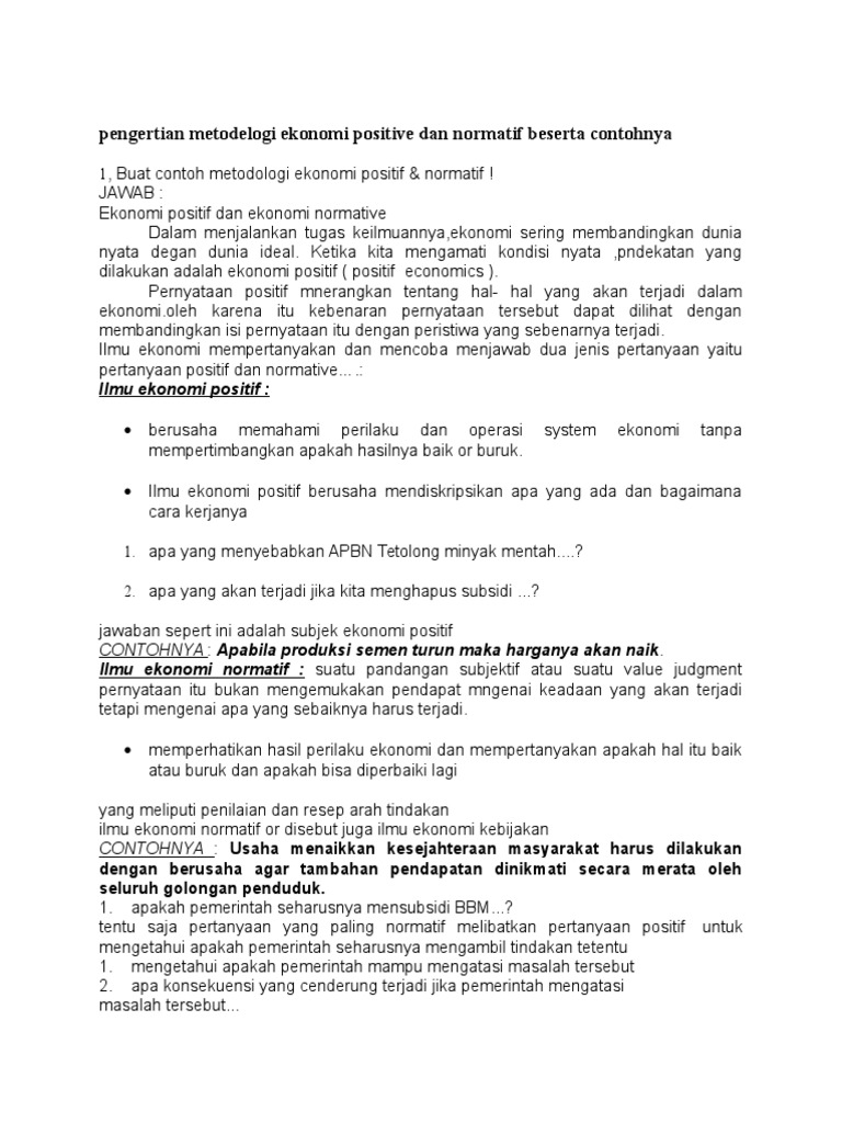 Pengertian Metodelogi Ekonomi Positive Dan Normatif Beserta