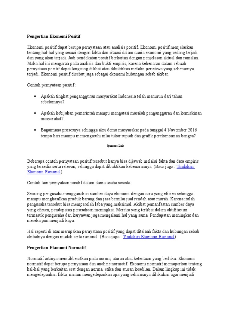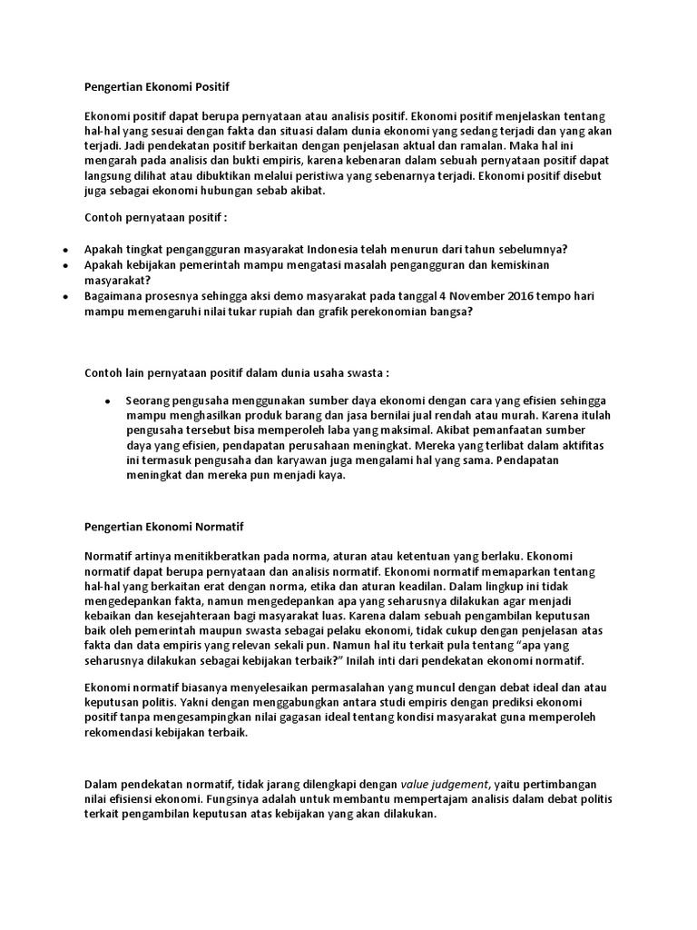 Pelajaran Sma Perbedaan Pernyataan Normatif Dan Positif Dalam